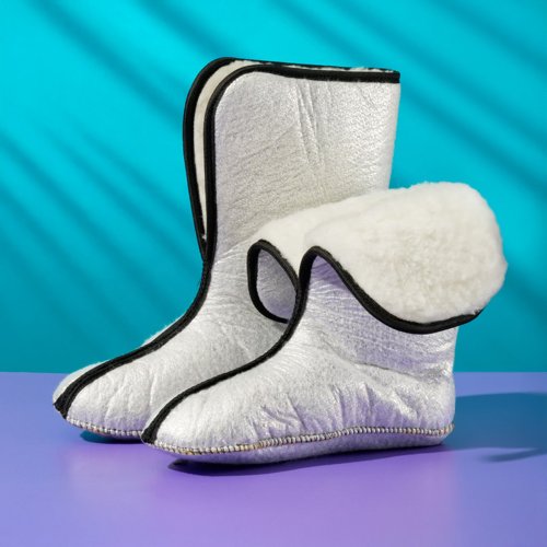У вас есть прекрасная возможность приобрести фольгированный сменный утеплитель для сапог! Вкладыш-утеплитель обеспечит надежную защиту от холода и создаст комфортную атмосферу в вашей обуви. Сапоги больше не будут вызывать дискомфорт в прохладную погоду. Вкладыши можно использовать в качестве домашней обуви в плохо отапливаемых и неотапливаемых помещениях, домах и дачах, постройках с холодным полом. Термовкладыши являются идеальным решением для тех, кто хочет сохранить тепло своих ног в обуви. Наши валенки созданы специально как вкладыш-чулок в резиновую обувь. Благодаря своей фольгированной структуре, они замечательно сохраняют тепло и защищают от пониженных температур. Внутренний чулок вкладыш в сапог под брендом "Колесник" имеет следующую структуру: первый слой фольгированный материал, второй слой нетканое полотно толщиной 3 мм, третий слой - объемный мех. Меховой слой имеет основу из 100 % хлопка, состав меховых волокон: 40 % натуральная шерсть, 60 % искусственное волокно. Вкладыши для обуви из такого материала сохраняют тепло при температуре -55 С. С помощью этого сменного утеплителя вы сможете наслаждаться каждой прогулкой в любую погоду. Он отлично подойдет для использования в зимний сезон или в прохладные весенние и осенние дни. Ваша обувь будет оставаться теплой и уютной. Такой вкладыш-утеплитель – незаменимый аксессуар для всех любителей активного отдыха и прогулок на свежем воздухе. Он обеспечивает полную свободу движения и комфорт при ходьбе. Подарите своим ногам заботу и уют с нашим фольгированным сменным утеплителем для сапог! Вкладыши для резиновых сапог и зимней обуви защитят от холода во время зимней рыбалки и охоты. Теплый меховой вкладыш для обуви - это отличный подарок для любителей охоты и рыбалки. Вставка в обувь заменит носки теплые мужские зимние. Вкладыши в сапоги подойдут для мужчин, для женщин, подросткам, также в наличии большие размеры.
